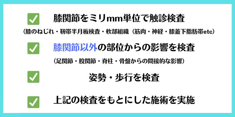 これはいわゆる「検査・施術」になります。私は医療国家資格を取得してから日本の徒手療法研修を修了し、またドイツのマニュアルセラピー(徒手療法)も研修修了しております。これらの経験や知識を用いて
